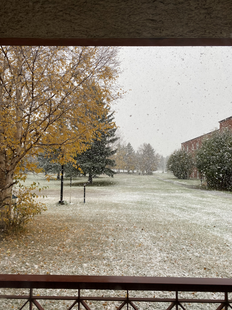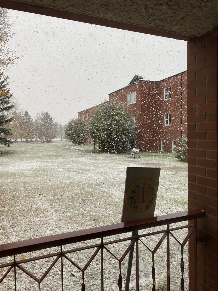 Here are two photos of our south view from the church hallway taken about 9:45 am this morning. The next two photos were taken about 5:25pm from the same window. I hope that the Winnipeggers don’t get snow