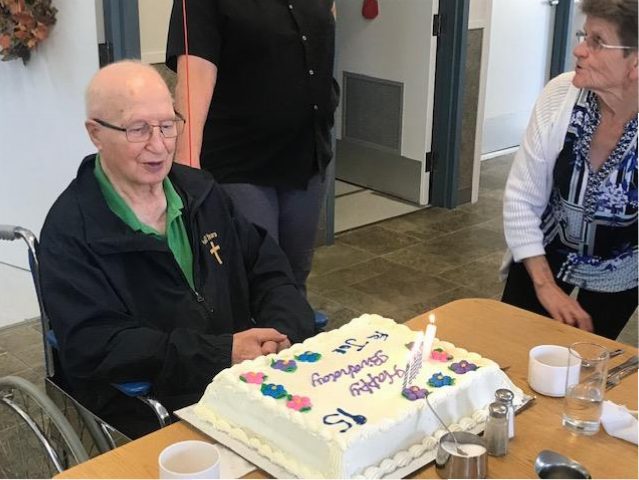 Father Joe turned 95 on Sept. 20. He’s the oldest monk of Saint Peter’s Abbey. He had a double celebration, first at dinner with a group of friends at Prairie View Home in Bruno and at supper with the monks at Saint Peters Abbey.