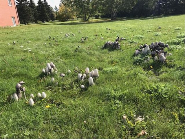 Br. Luis Cruz, left, Br. Benedict Van Ginkel and Br. Denys Janiga, OSB visited the former train station in Rosthern where the first settlers arrived in 1903 to St. Peter’s Colony.
