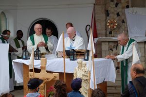 The 99th annual pilgrimage at Mt. Carmel was celebrated Sunday, July 18. It turned out to be a beautiful, cool day with more than 300 pilgrims present. Bishop Mark Hagemoen presided at the festive Mass.