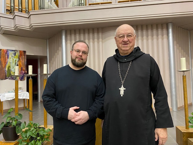 Each Advent season the abbey community celebrates with an Advent wreath in the dining room. Joseph Do lights the candle for the first week of Advent on Saturday, Nov. 27.